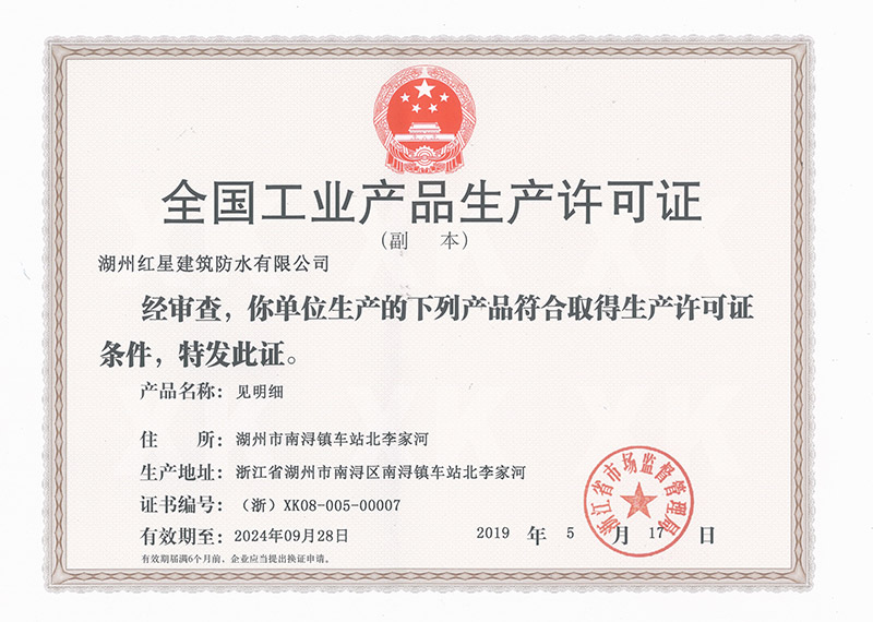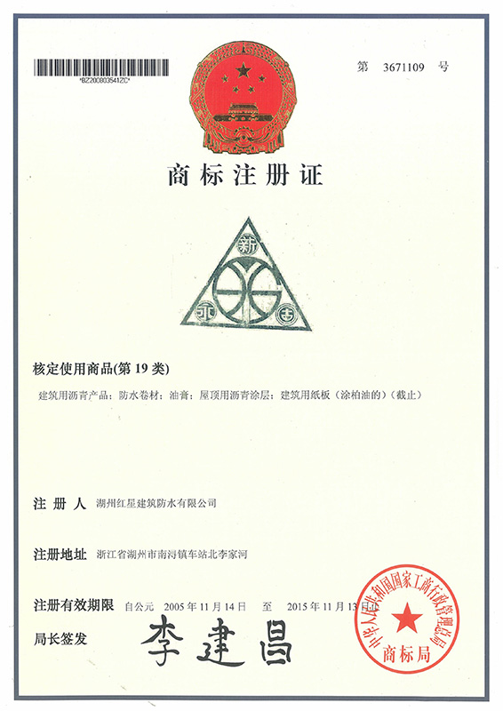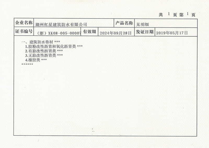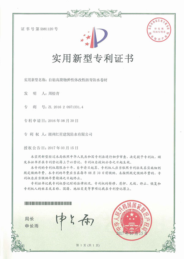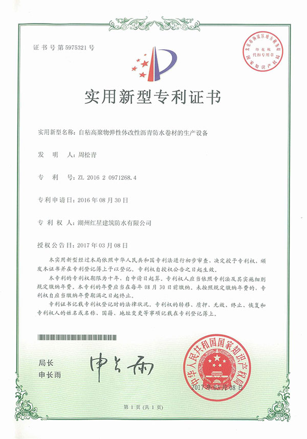 防水卷材專利證書