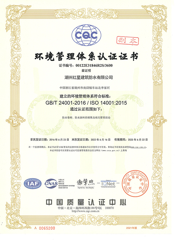 環(huán)境管理體系認(rèn)證證書